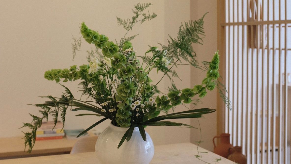 Flowers for the local coffee and cowork space The Table, Tavira. The weekly refresh and addition to the space with white and green flowers.