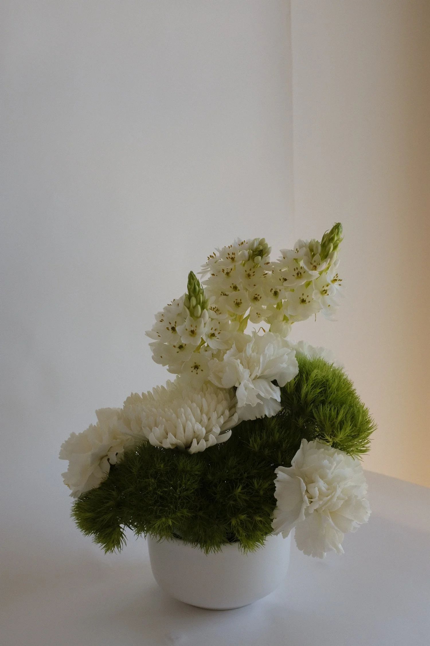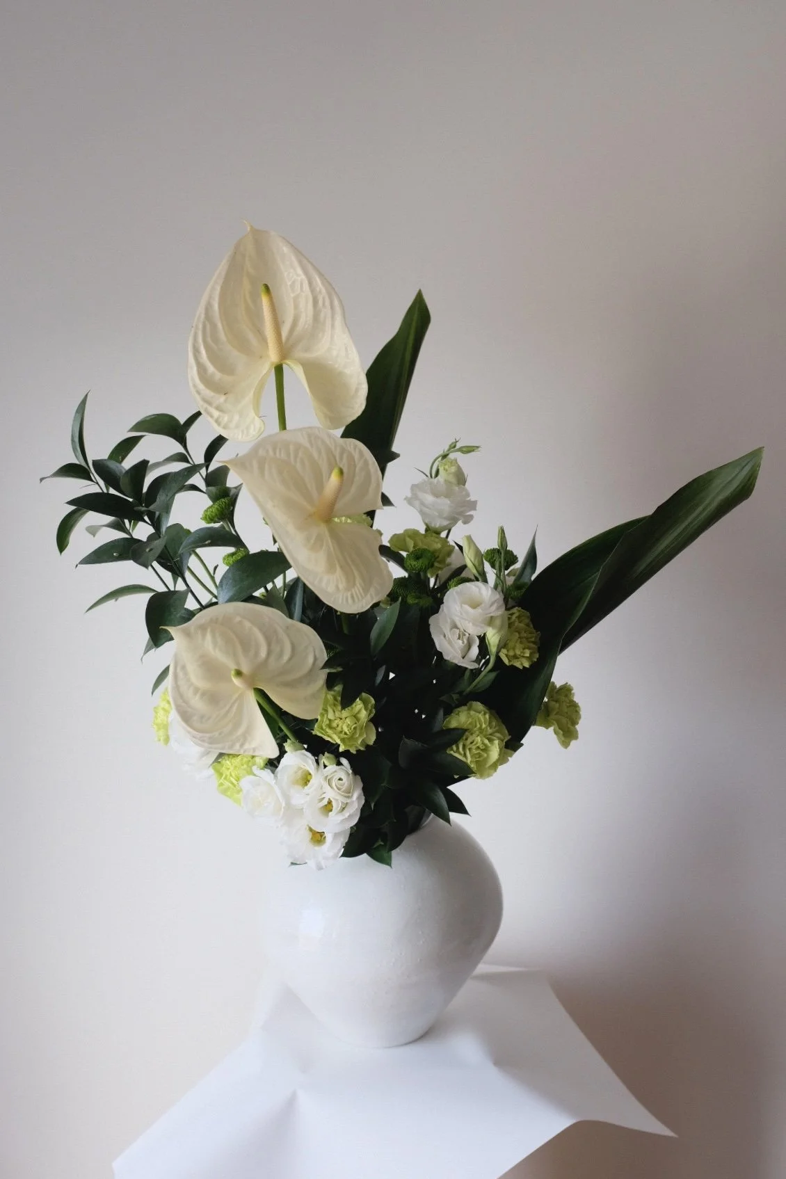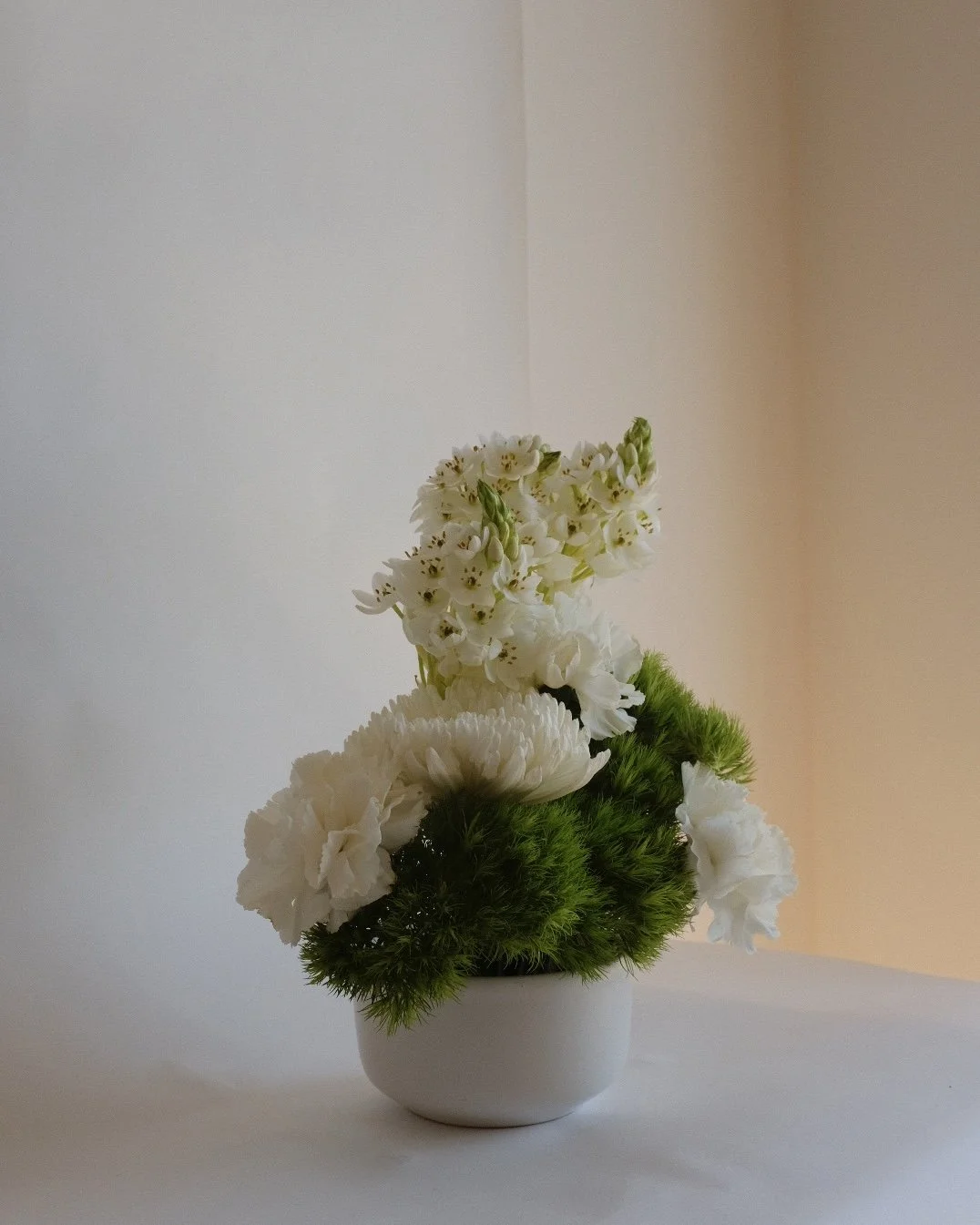 store Signature arrangement €65.00 Weekly flower subscription €40.00 Round kenzan €17.00 Pruning scissors €13.00 White bowl €7.00 The tool set €35.00