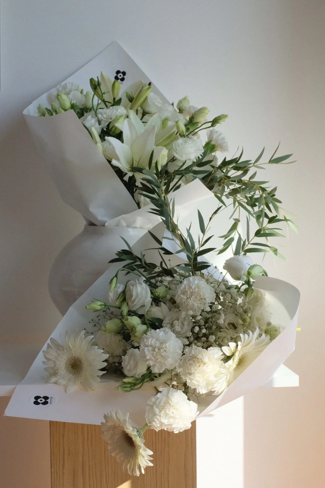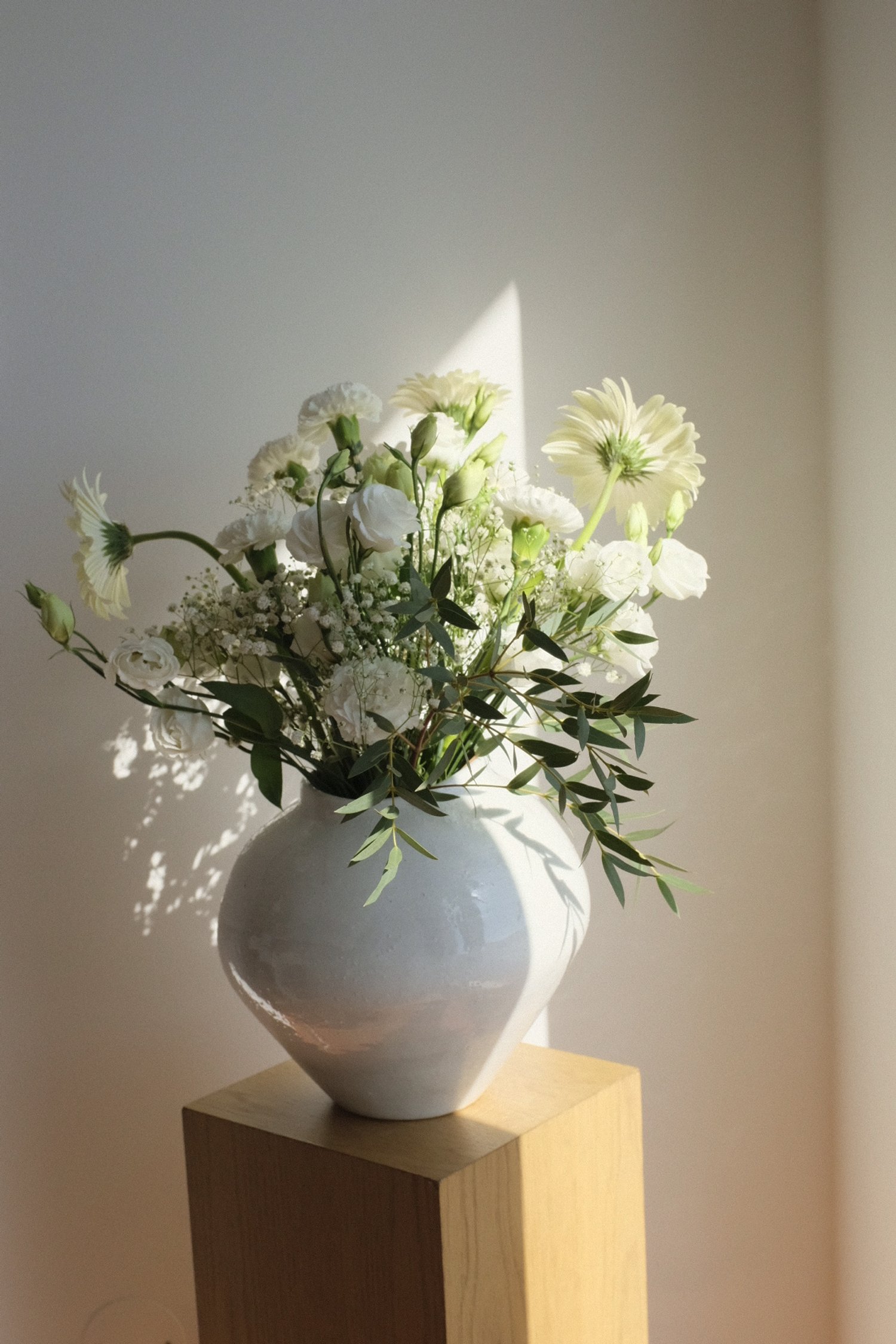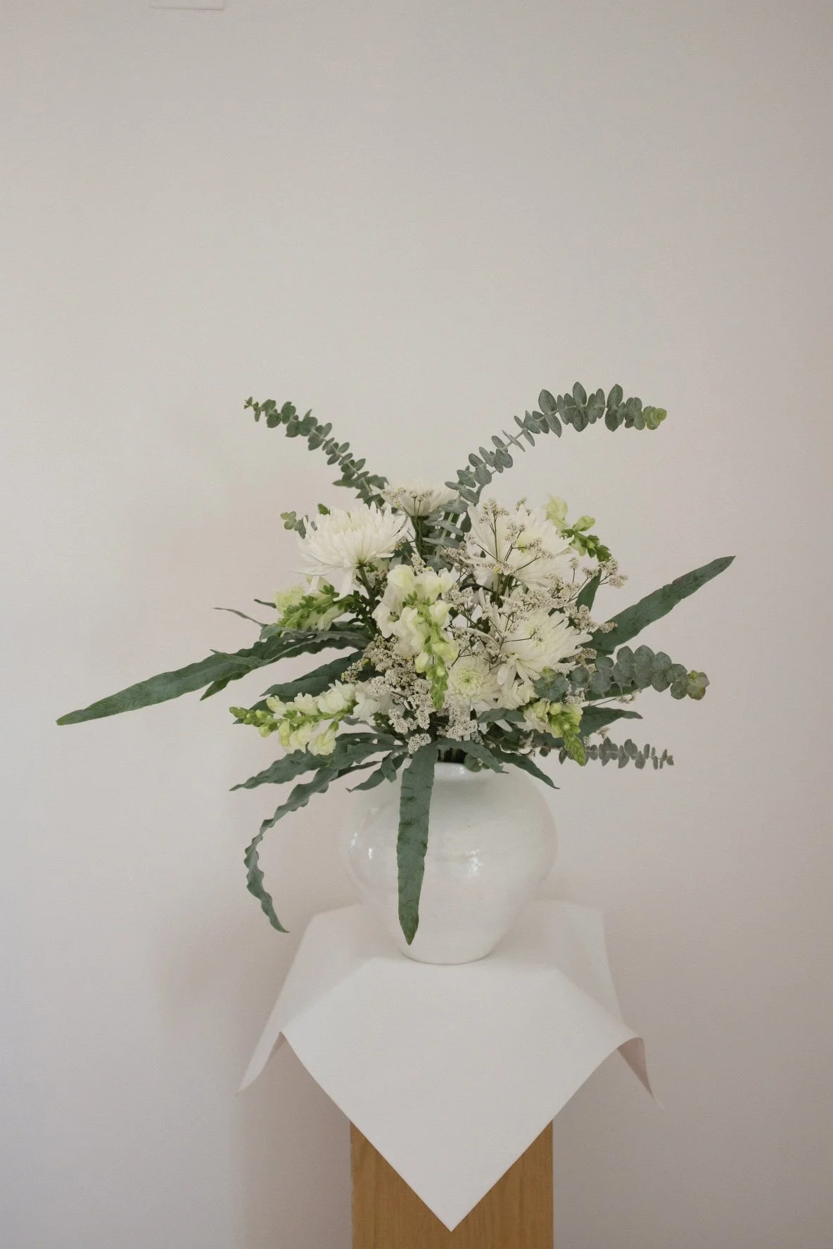 store Signature arrangement €65.00 Weekly flower subscription €40.00 Round kenzan €17.00 Pruning scissors €13.00 White bowl €7.00 The tool set €35.00